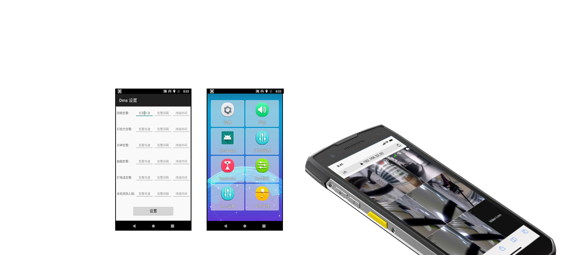 DMS detects and warns of unsafe driver behavior: fatigue detection, distraction detection, phone call detection, smoking detection, as well as yawn, no driver status, no mask wearing, seatbelt unfastened, and other driver status alarms, helping to ensure safe driving and easy intelligent fleet management.