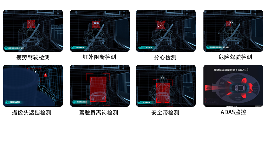 •DMS Driver Behavior Analysis, Fatigue Driving, Phone Calls, Smoking, Distraction, Blockage Monitoring, etc.